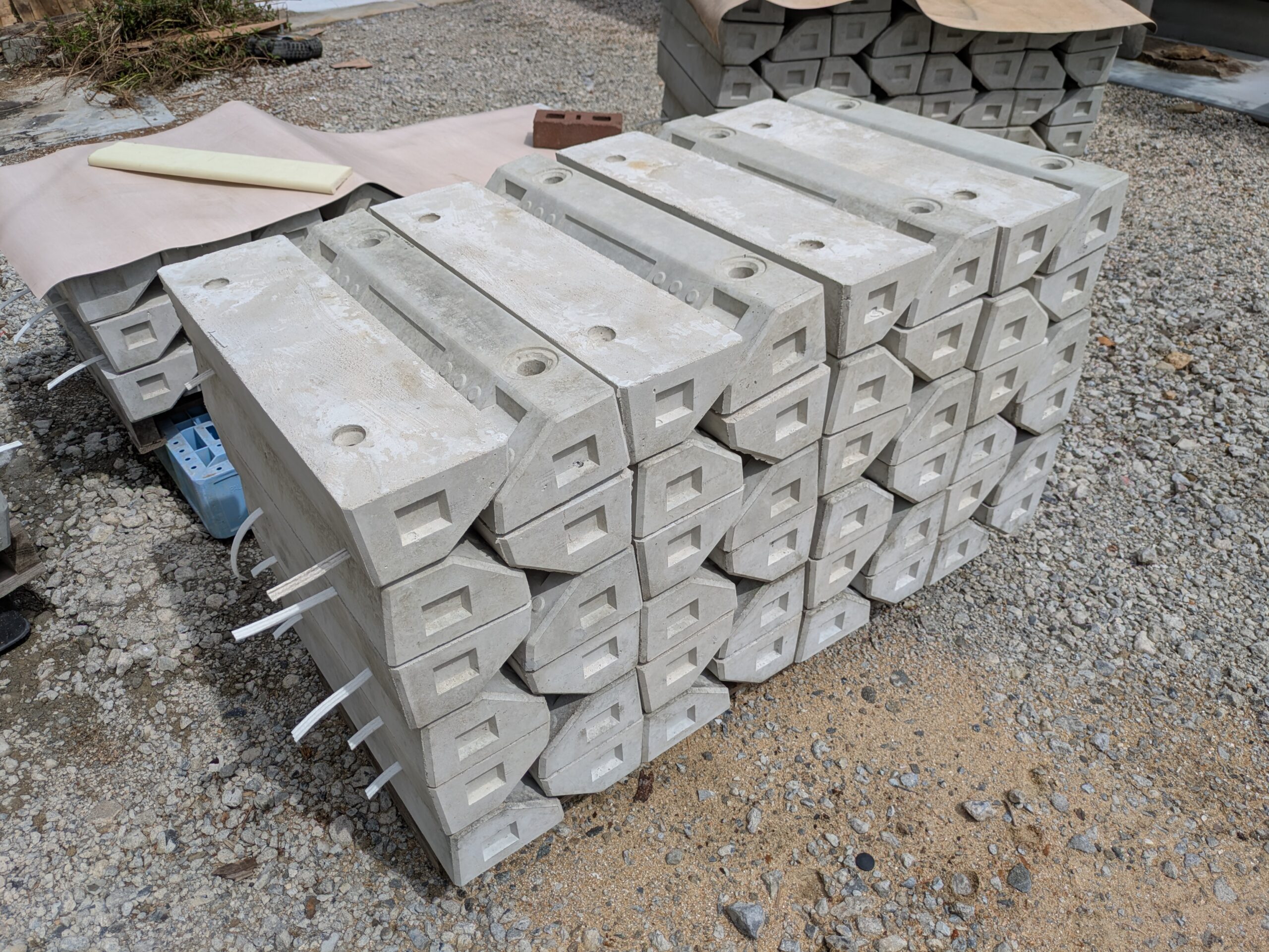 駐車場に使用される各種車止め(パーキングブロック)や様々な大きさの縁石等を